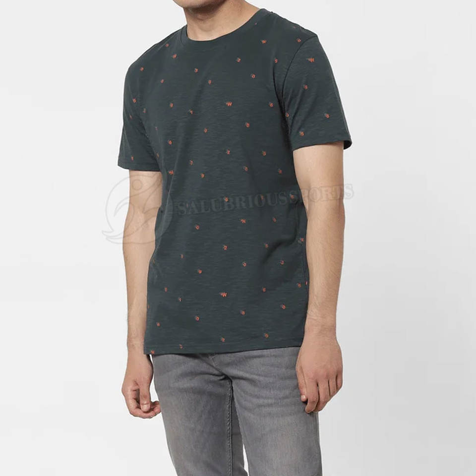 เสื้อยืดผ้าฝ้ายแขนสั้นสำหรับผู้ชายทรงพอดีตัวปกติพิมพ์ลายเต็มตัวดีไซน์ใหม่ OEM 100%