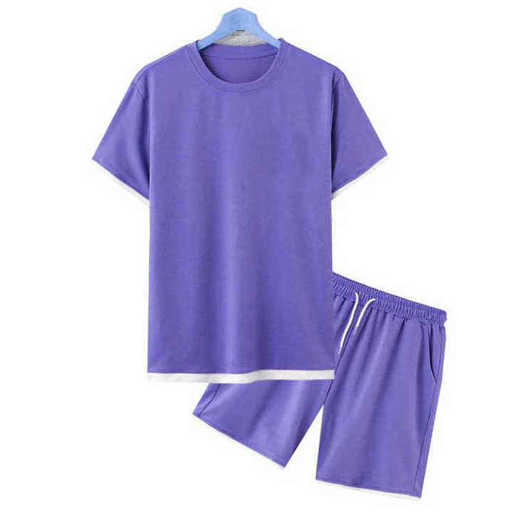 ชุดกีฬาฤดูร้อนสำหรับนักเรียนเสื้อยืดแขนสั้นทรงหลวมกางเกงครอปแบบเรียบง่าย