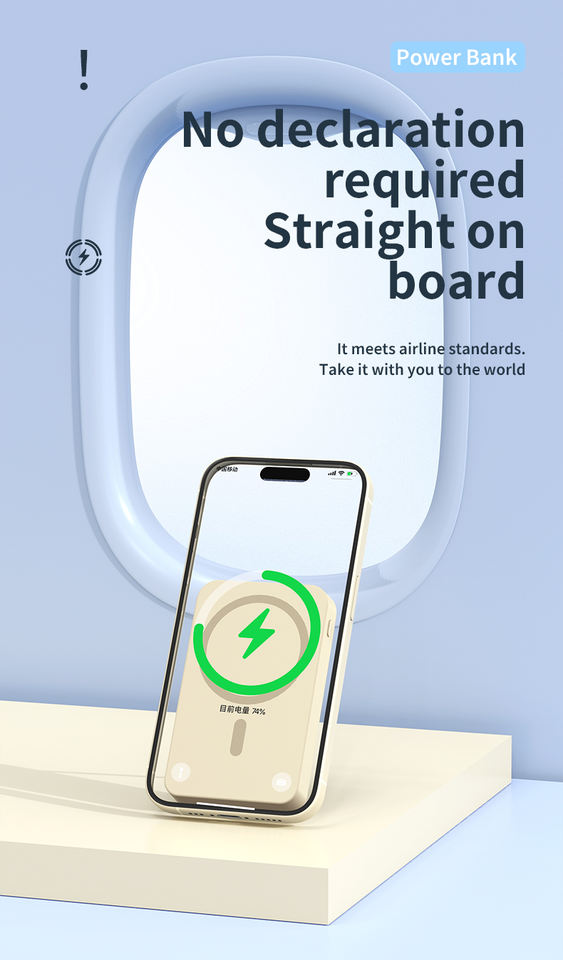 พาวเวอร์แบงค์ไร้สายแม่เหล็กแบบพกพา OEM ใหม่ พร้อมสายชาร์จ 10000mAh PD 22.5W ชาร์จเร็ว สำหรับ iPhone 17 Pro Max