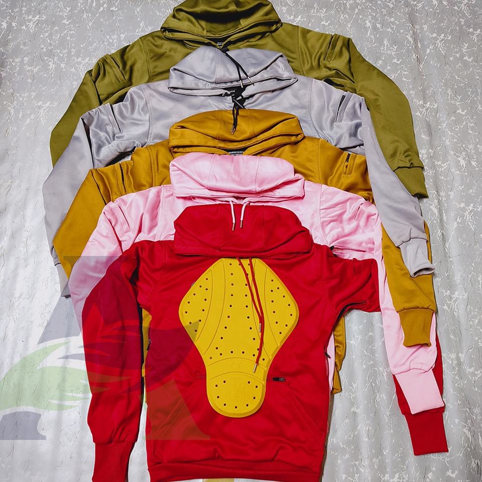 เสื้อฮู้ดมอเตอร์ไซค์สีเขียวมะกอกแบบใหม่ เสื้อฮู้ดมอเตอร์ไซค์เสริมใยอะรามิดพร้อมแผ่นป้องกันสีแดง เสื้อฮู้ดมอเตอร์ไซค์ป้องกัน