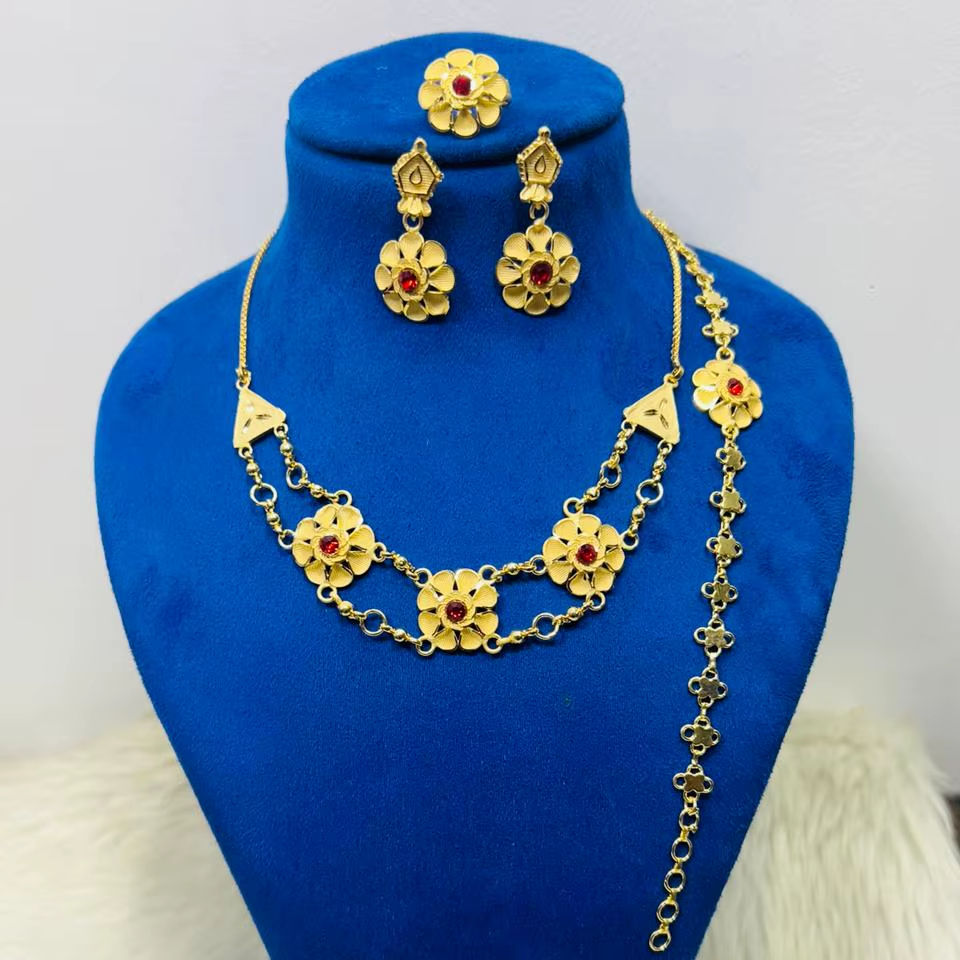 สร้อยคอทองคำชุบ 24K หนัก 1 กรัม ดีไซน์ใหม่ พร้อมสร้อยข้อมือแบบกล่องลายดอกไม้ ชุดเครื่องประดับแฟชั่นสำหรับผู้หญิง
