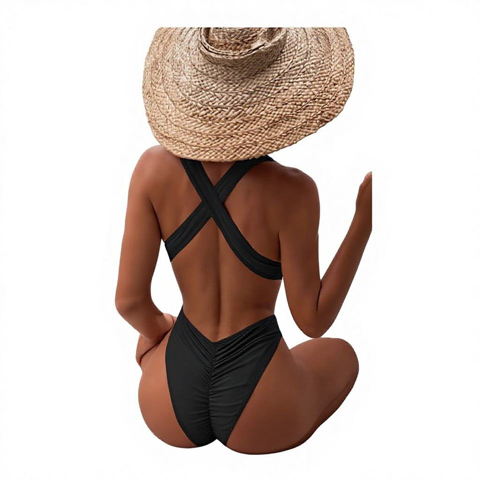 ชุดว่ายน้ำวันพีซแบบใหม่ สายไขว้หลัง สีพื้น ผ้าสแปนเด็กซ์/ไนลอน พร้อมฟองน้ำเสริมหน้าอก ชุดว่ายน้ำผู้หญิง รุ่น 6401