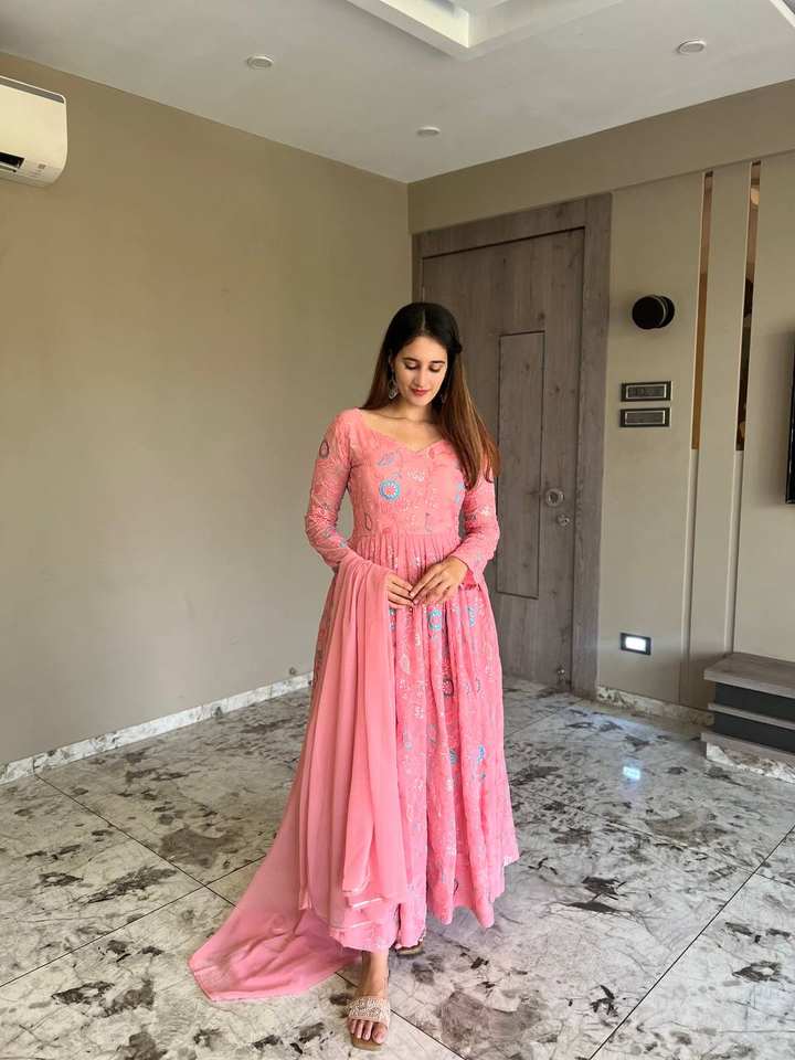 ชุดสูทอะนาร์คาลีสีชมพูใหม่สำหรับผู้หญิงชุดสูทดีไซน์แบบจริงสำหรับงานแต่งงานและงานปาร์ตี้