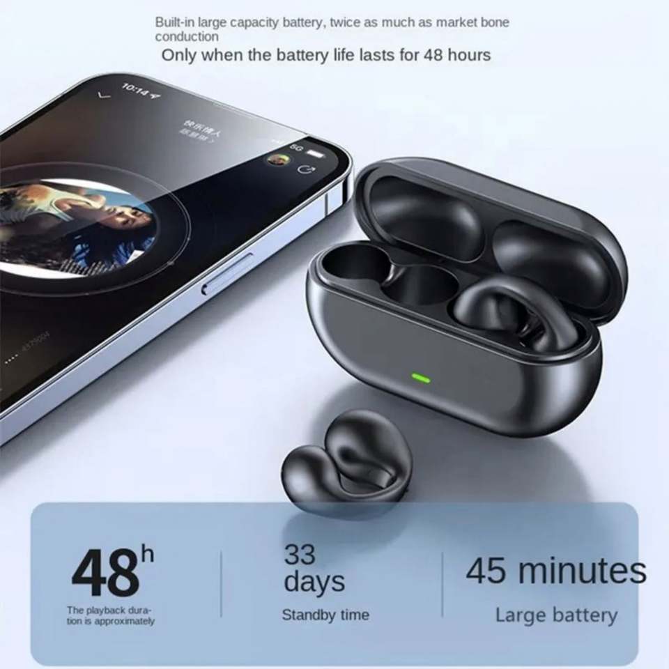 หูฟังไร้สายแบบเปิดหูรุ่นใหม่ สำหรับปั่นจักรยาน วิ่ง ออกกำลังกาย แบบหนีบหู ระบบส่งเสียงผ่านกระดูก เทคโนโลยีดิจิตอลบลูทูธ