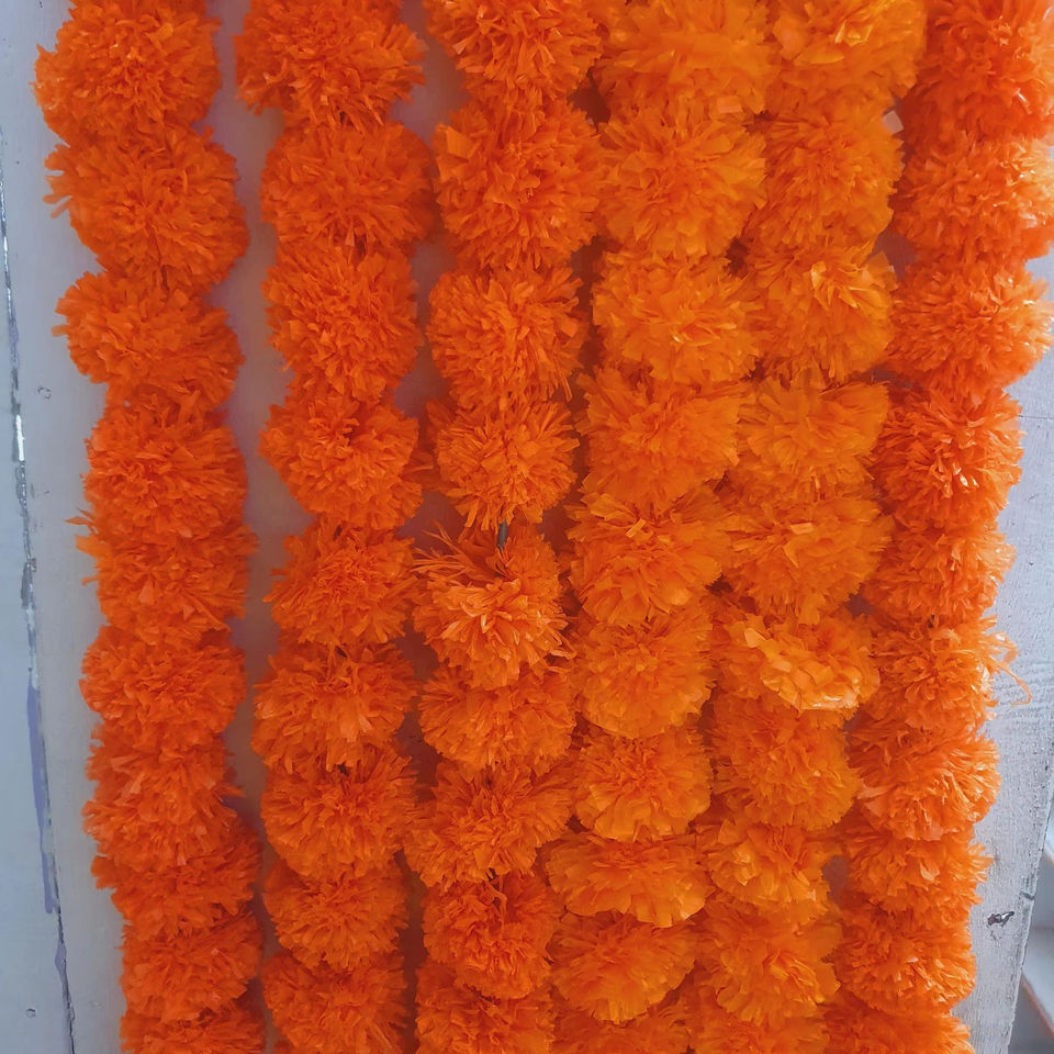 พวงมาลัยดอกดาวเรืองสีส้มยาว4.5ฟุตพวงมาลัยดอกดาวเรืองอินเดียแบบสายยาวของตกแต่งฉากหลังของ Diwali pooja ใหม่