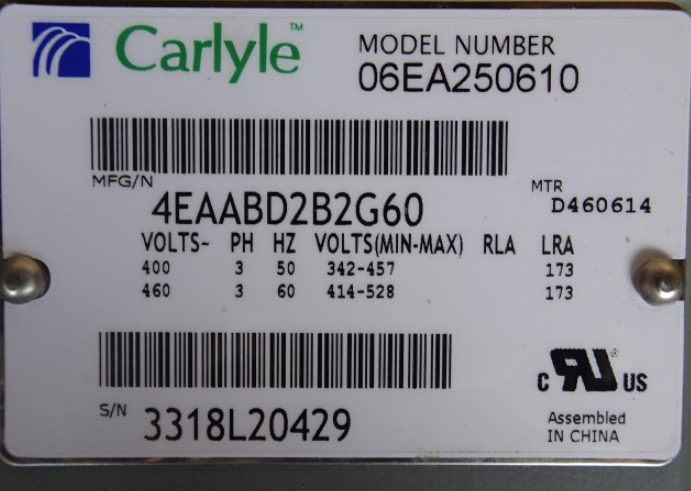 คอมเพรสเซอร์ใหม่แท้รุ่น 06EA250610 แบบลูกสูบ 4 สูบ 20 แรงม้า ยี่ห้อ Blacker สำหรับห้องเย็น 400/460V 50/60Hz