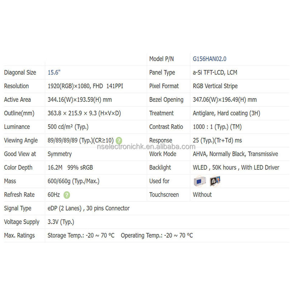 แบบจำลอง:G156HAN02.0 จี156แฮน02.0