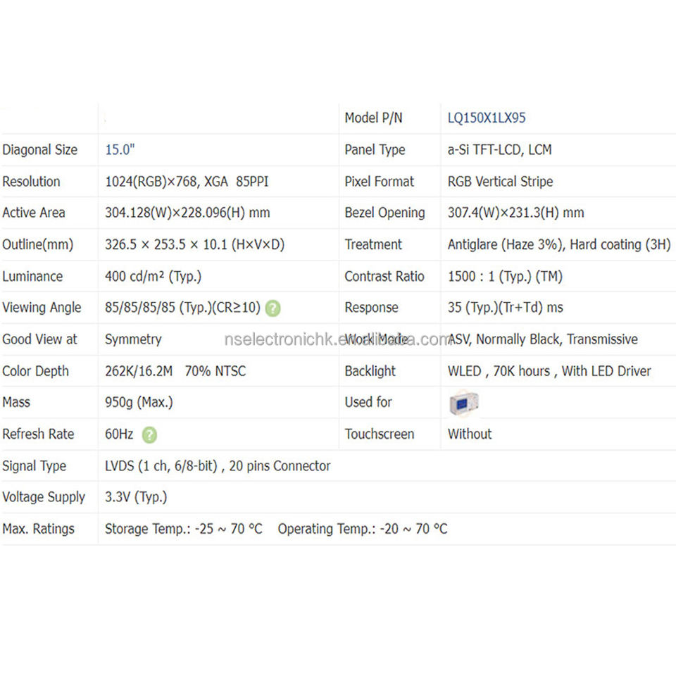 หมายเลขรุ่น: LQ150X1LX95 แอลคิว150X1แอลเอ็กซ์95
