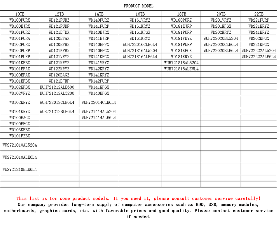 หมายเลขรุ่น:HUS722T2TALA604, MG07ACA12TE, HUS728T8TALE6L4, HUS726T4TALE6L4, WUH721816ALE6L4