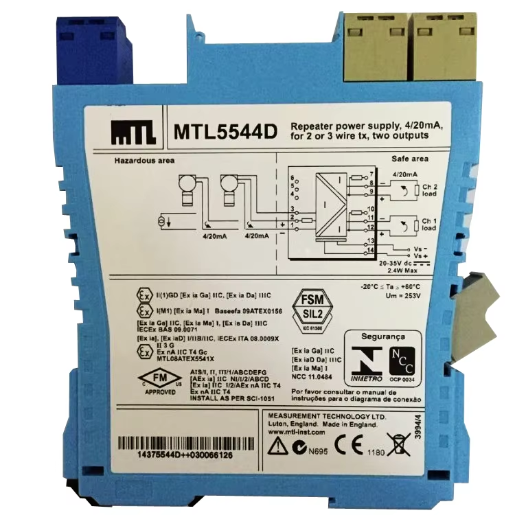 แหล่งจ่ายไฟรีพีทเตอร์แบบใหม่ของแท้, ช่องสัญญาณเดียว, เอาต์พุต 4/20 มิลลิแอมป์, 2 เอาต์พุต, ชิ้นส่วนอิเล็กทรอนิกส์ MTL5544D