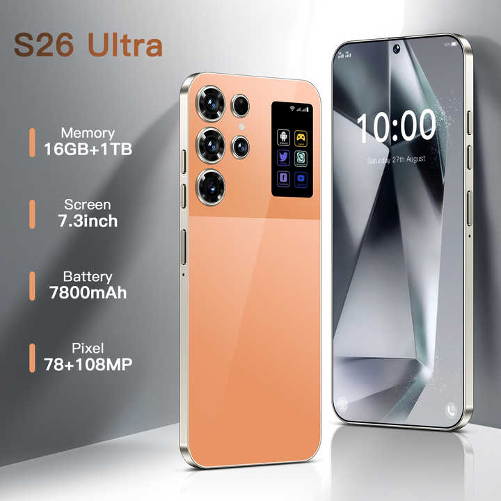 สมาร์ทโฟนรุ่นใหม่ S26 Ultra 5G ของแท้ หน่วยความจำ 16GB+1TB หน้าจอ HD 5G ขนาด 7.3 นิ้ว ระบบปฏิบัติการ Android 15 ซีพียู Decacore รองรับการชาร์จเร็ว 100W รองรับ CDMA สำหรับเล่นเกม