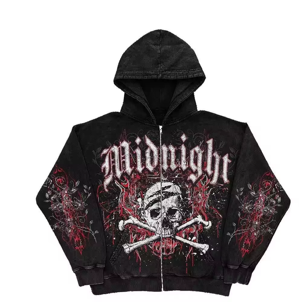 เสื้อฮู้ดสไตล์ฮิปฮอปแนวสตรีทลำลองสำหรับใส่กลางแจ้ง ลายพิมพ์หัวกะโหลกและแมงมุม สีพื้น เสื้อกันหนาวสำหรับผู้ชาย