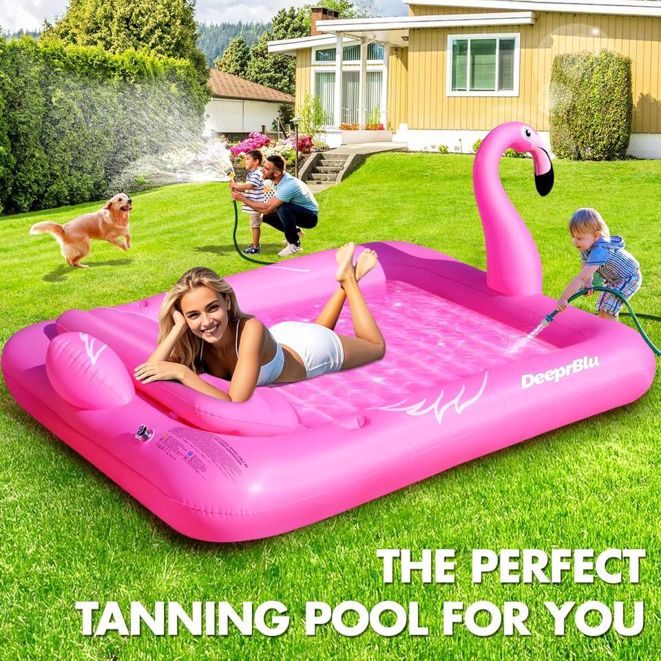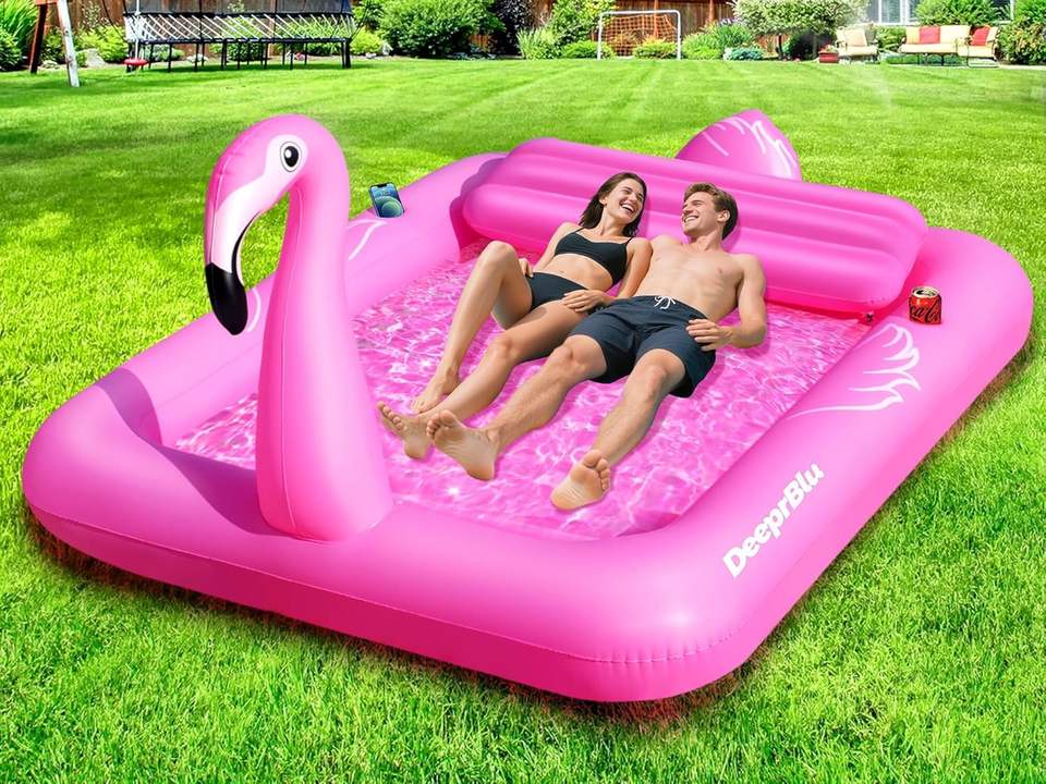 ใหม่เตียงลอยกลางแจ้งสระว่ายน้ำเก้าอี้เลานจ์สระว่ายน้ำอาบแดดฟลามิงโกอาบแดดสระว่ายน้ำป้องกันแสงแดดที่วางถ้วยน้ำในอ่างอาบน้ำ
