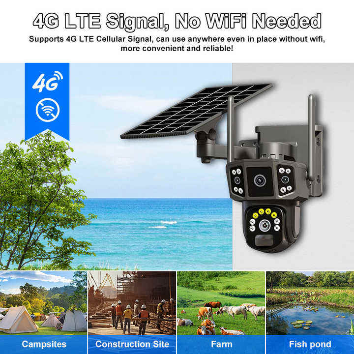 กล้องรักษาความปลอดภัยระบบ PIR ตรวจจับร่างกายมนุษย์เครือข่ายสินค้าประเภทซิมการ์ด4G LTE ใช้พลังงานแสงอาทิตย์