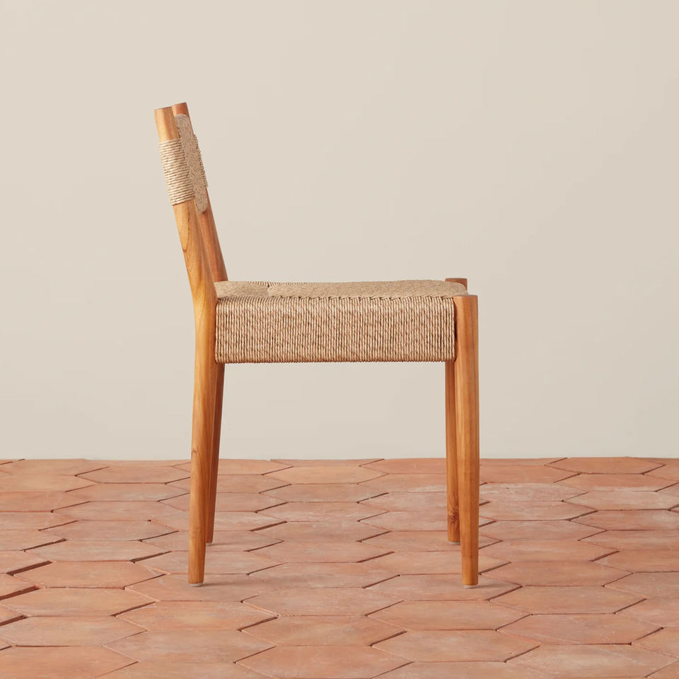 ใหม่เฟอร์นิเจอร์กลางแจ้งเก้าอี้รับประทานอาหารที่ทันสมัยสวนสวนไม้สักธรรมชาติพร้อมเชือกหวาย-kaol