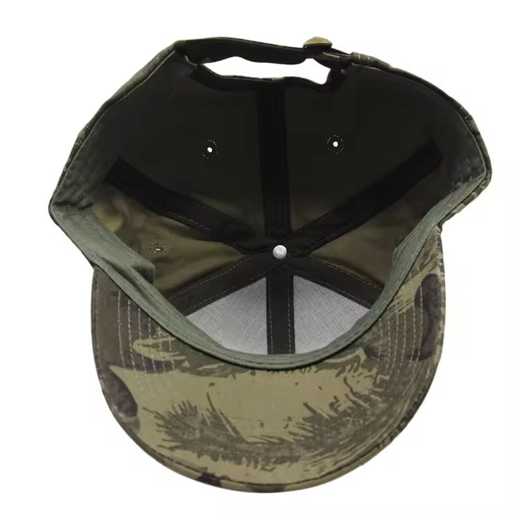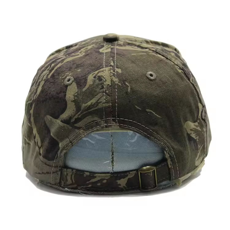 หมวกพรางลายป่าสำหรับล่าสัตว์กลางแจ้งแบบใหม่สำหรับทุกเพศ ผลิตจากผ้าวอร์สเตดแบบสปอร์ต ตกแต่งด้วยหัวเข็มขัดทองแดง พร้อมโลโก้สั่งทำพิเศษ