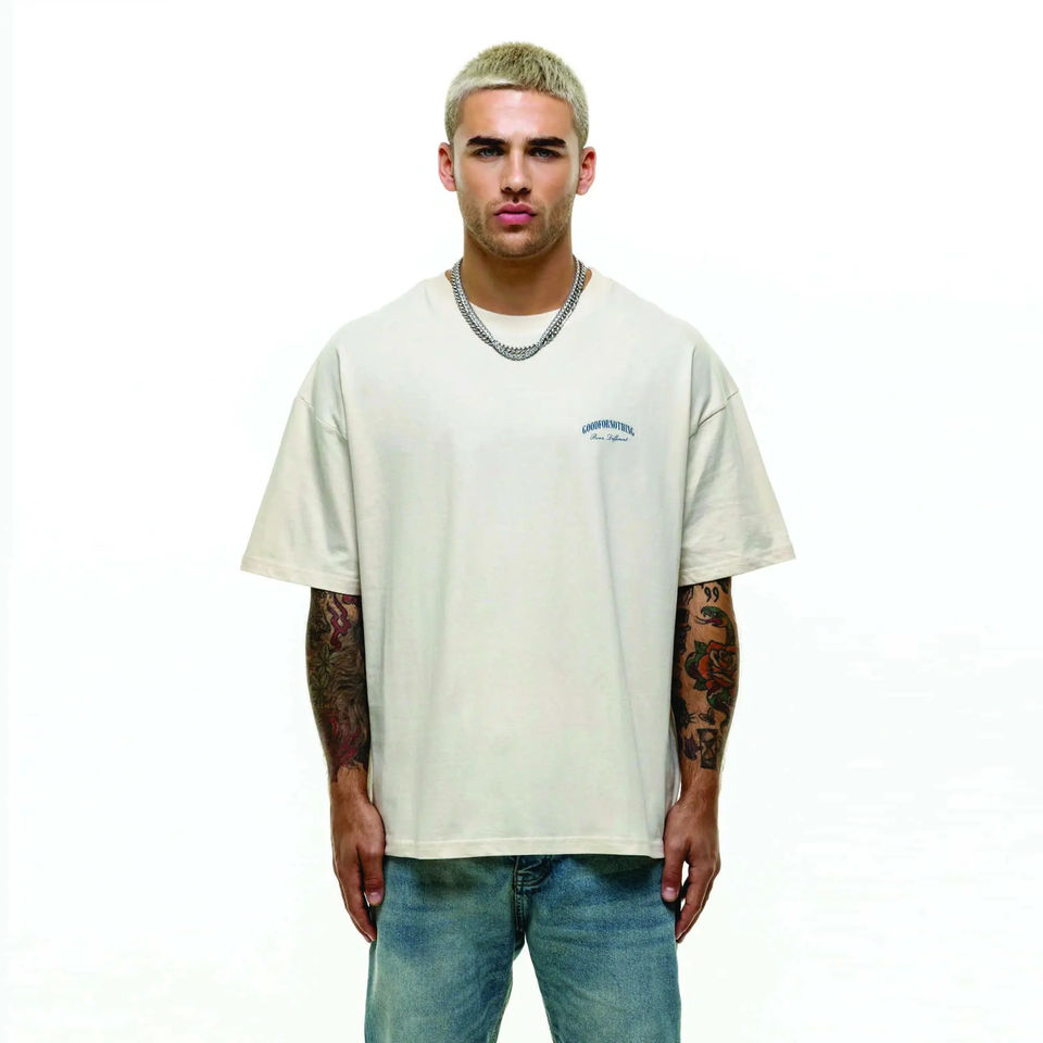 เสื้อยืดคอกลมแขนสั้นสำหรับผู้หญิงและผู้ชายเสื้อยืดคอกลมผ้าคอตตอนสองชั้นดีไซน์ทรงโอเวอร์ไซส์