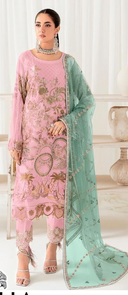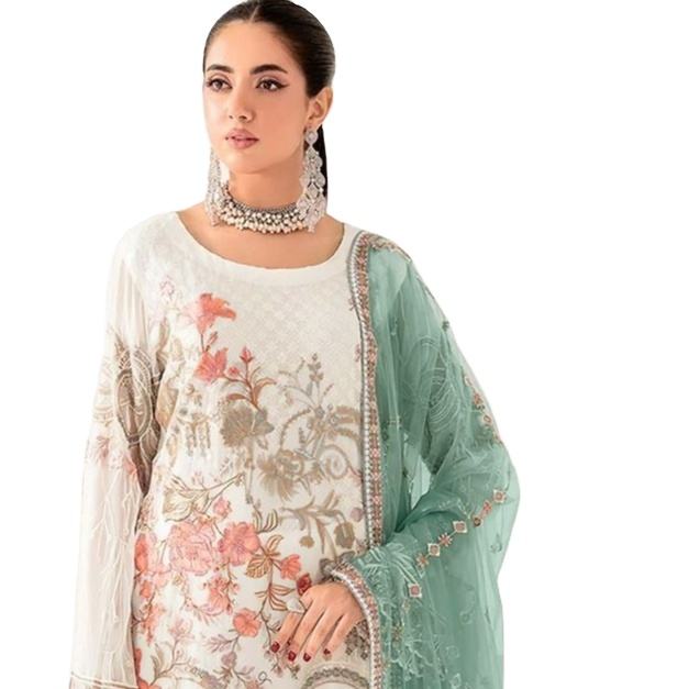 ชุดสูทผ้าจอร์เจตต์แบบปากีสถานใหม่ พร้อมงานปักหนัก กางเกงทรงสแตนตัน และผ้าคลุมไหล่ผ้าตาข่ายลายผีเสื้อ สำหรับขายส่ง