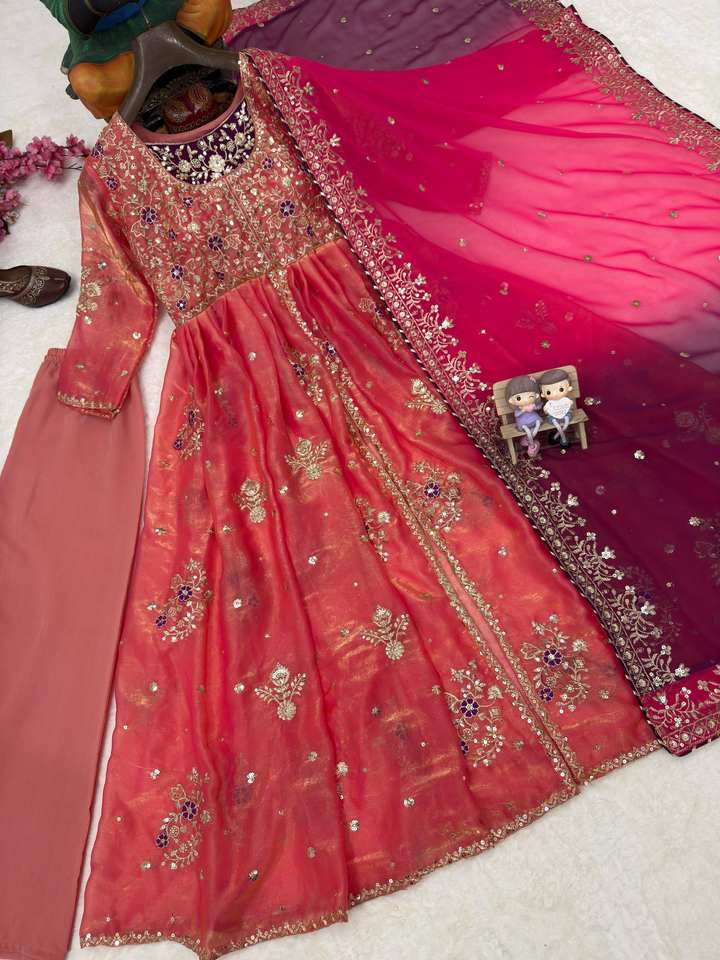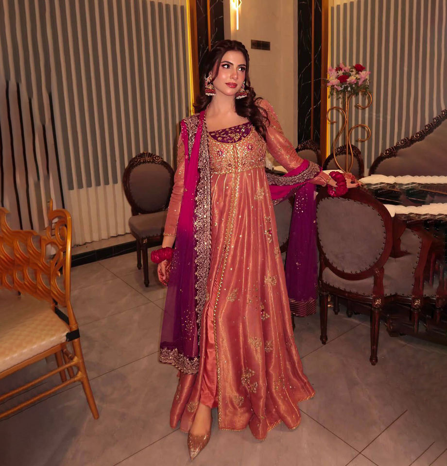 ชุดเดรสงานปาร์ตี้ผ้าเน็ตหนักปักลายปักเลื่อมอย่างดี พร้อมผ้าคลุมไหล่สำหรับผู้หญิง สไตล์บอลลีวูด พร้อมสวมใส่