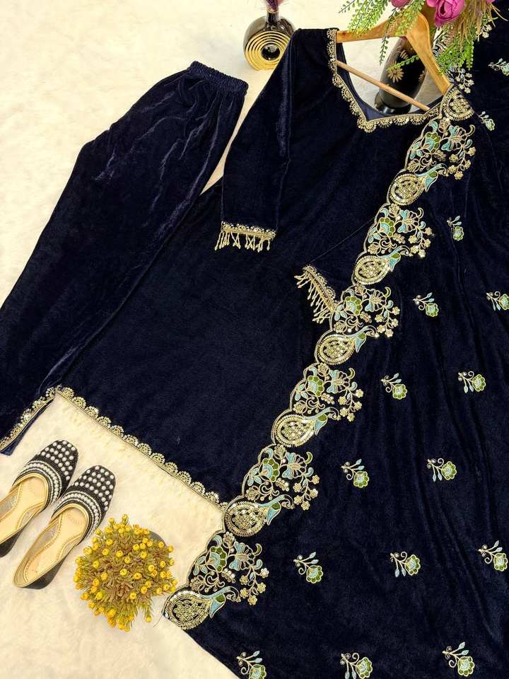 ชุดปาร์ตี้ใหม่นักออกแบบผ้ากำมะหยี่วิสคอสดูจากด้านบน-dupatta และเย็บด้านล่างพร้อมงานปักที่หนักหน่วง