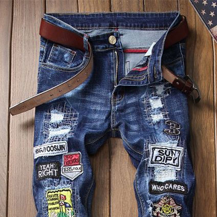 กางเกงยีนส์ปะสำหรับผู้ชายมาใหม่