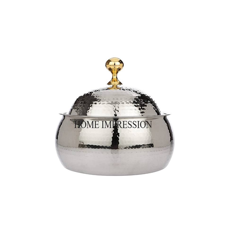 หม้อปรุงอาหารโลหะขัดเงาสีเงินเงางามดีไซน์ใหม่ล่าสุดจากอินเดีย