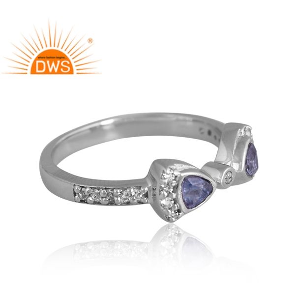 แหวนพลอยสีเงินแพลเลเดียมชุบ925ดีไซน์ใหม่และแหวนพลอยบุษราคัมสีขาวผู้ผลิตเครื่องประดับแบบกำหนดเอง