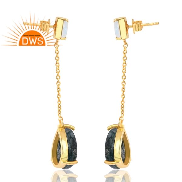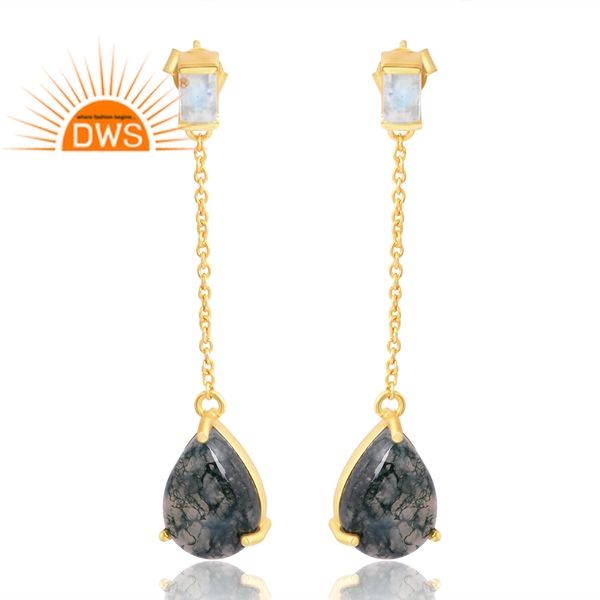 ต่างหูดีไซน์ใหม่925เงินสเตอร์ลิงชุบทอง18K รูปพระจันทร์สีรุ้งและตะไคร่น้ำอัญมณีอัญมณีอัญมณีอัญมณีอัญมณีอัญมณีอัญมณีดีเดมี่สำหรับผู้หญิง