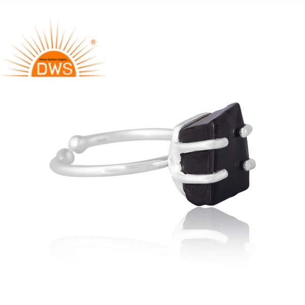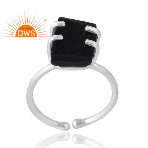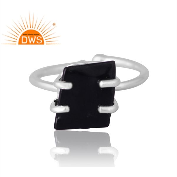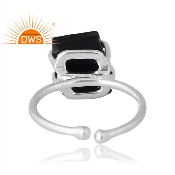 แหวนอัญมณีออบซิเดียนสีดำธรรมชาติสีเงินสเตอร์ลิงดีไซน์ใหม่สำหรับผู้หญิงผู้ผลิตเครื่องประดับตามสั่ง