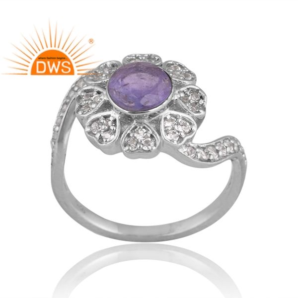 แหวนพลอยบุษราคัมชุบเงินแพลเลเดียมสีธรรมชาติดีไซน์ใหม่สำหรับเป็นของขวัญสำหรับผู้หญิง