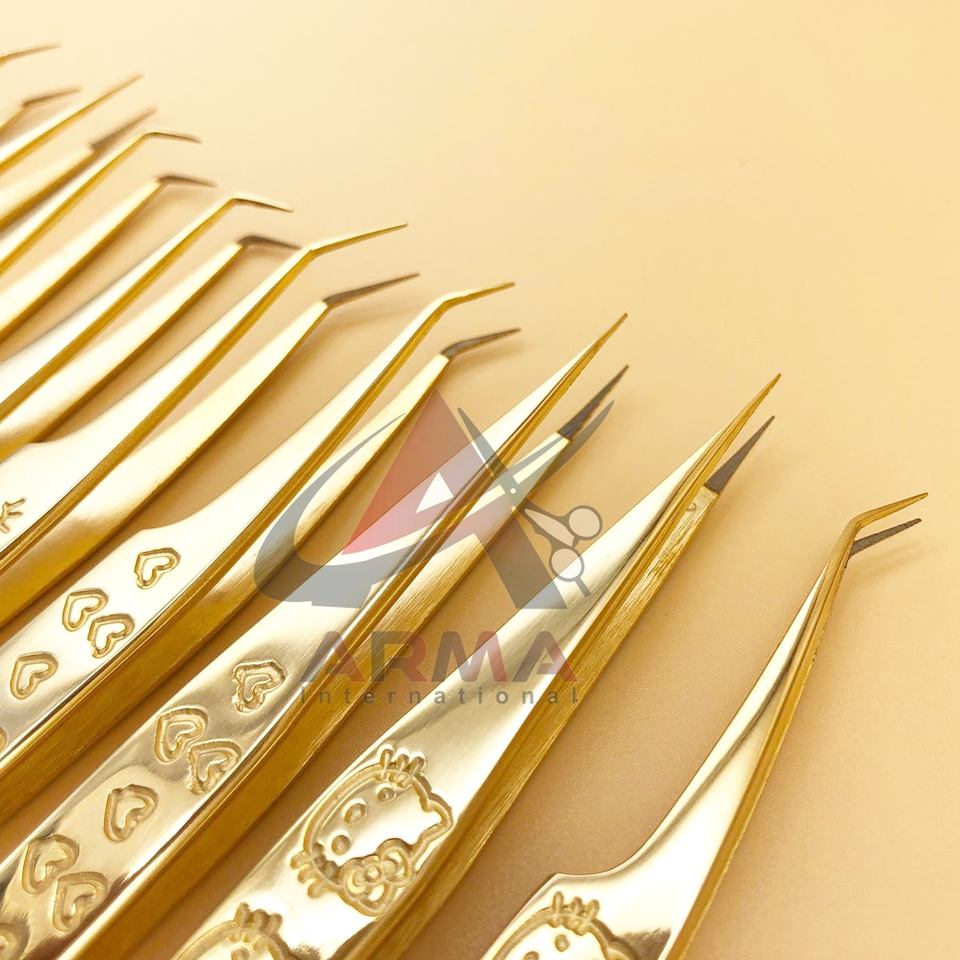 แหนบต่อขนตาแบบใหม่แหนบปลายแหลมดีไซน์รูปผีเสื้อ Hello Kitty 24K ชุบทองอย่างยั่งยืน