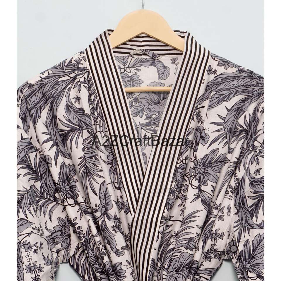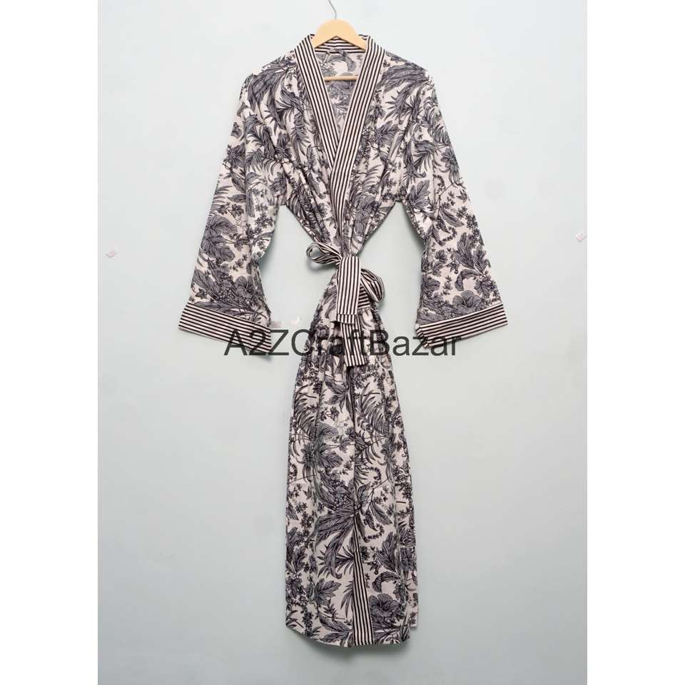 ชุดคลุมกิโมโนผ้าฝ้ายแท้ 100% ลายพิมพ์นก แบบใหม่ ชุดคลุมอาบน้ำสไตล์โบโฮ ชุดเดรสยาว