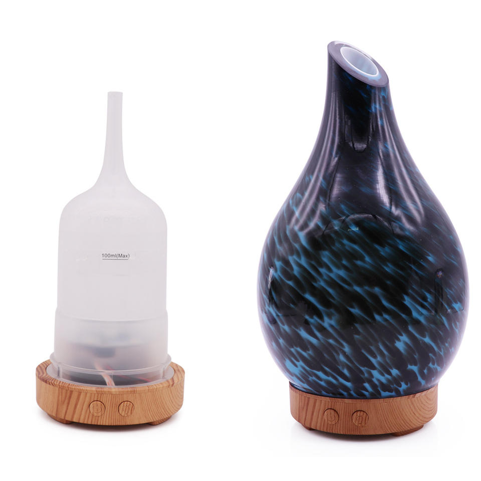 เครื่องกระจายกลิ่นหอมแก้วลายใหม่ 100 มล. เครื่องเพิ่มความชื้นแบบอัลตราโซนิกพร้อมไฟ LED สำหรับใช้ในบ้านและสำนักงาน
