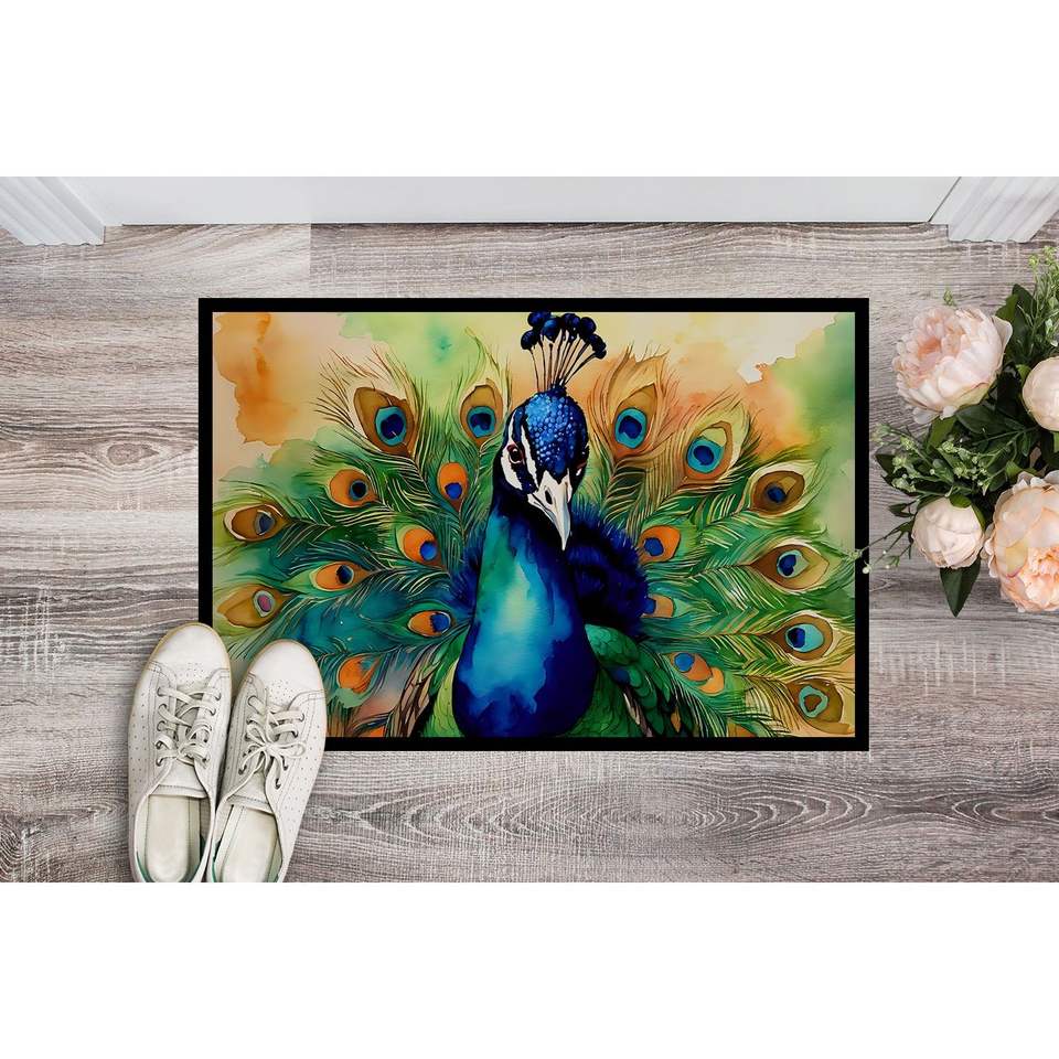 พรมเช็ดเท้าลายนกยูงแบบใหม่พรมเช็ดเท้ากันลื่นพื้นเตี้ย18H x 27W พรมทางเข้าประตูทางเข้าในร่มกลางแจ้ง