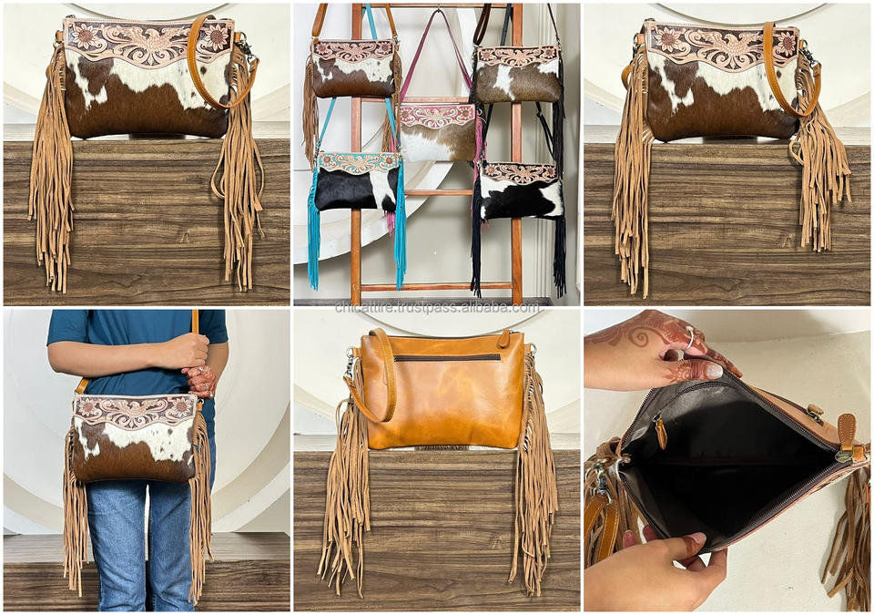 ชื่อผลิตภัณฑ์:กระเป๋าสะพายข้างหนังวัวแท้ ทำมือ ประดับพู่