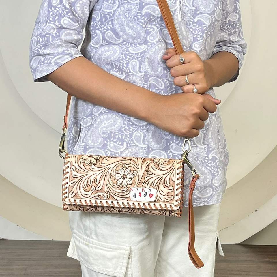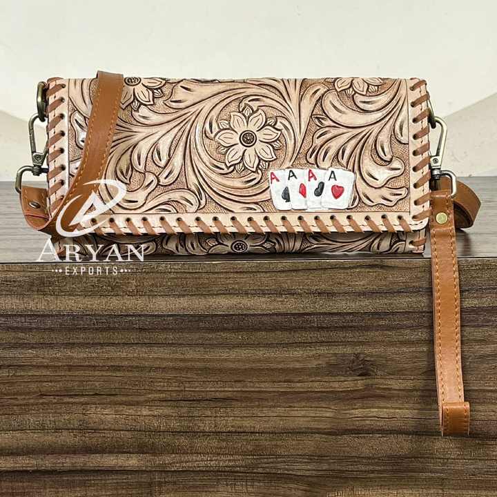 กระเป๋าคลัทช์หนังแท้ลายดอกไม้ทำมือแบบใหม่ กระเป๋าสะพายข้างหนังแท้ขนาดใหญ่สำหรับผู้หญิง