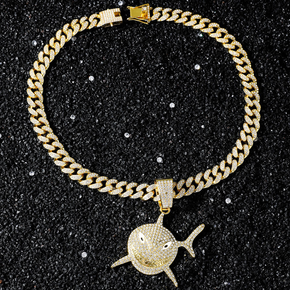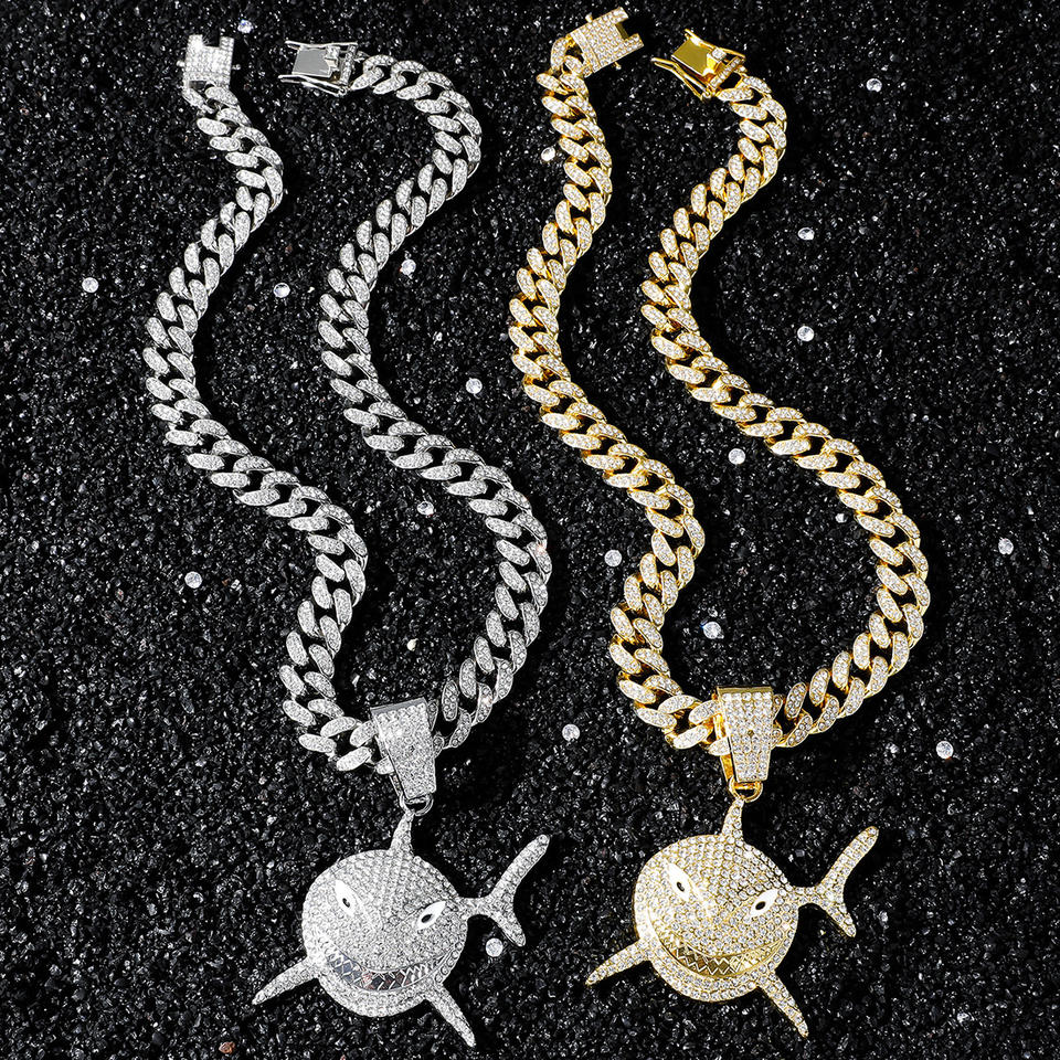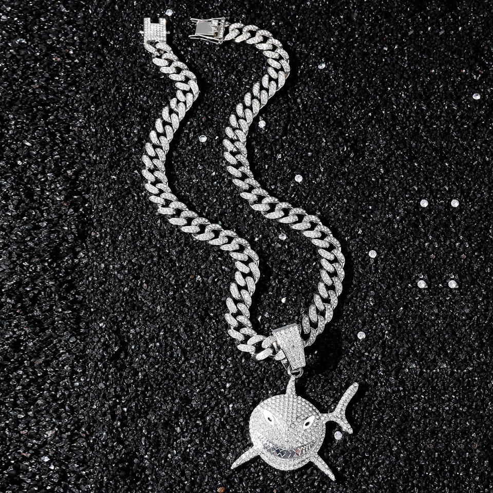 ใหม่สร้อยคอจี้ฉลามชุบเงินสุดเท่สไตล์ฮิปฮอปสุดเท่สร้อยคอแนวสร้างสรรค์ไม่เหมือนใครเครื่องประดับแฟชั่นสำหรับผู้ชาย