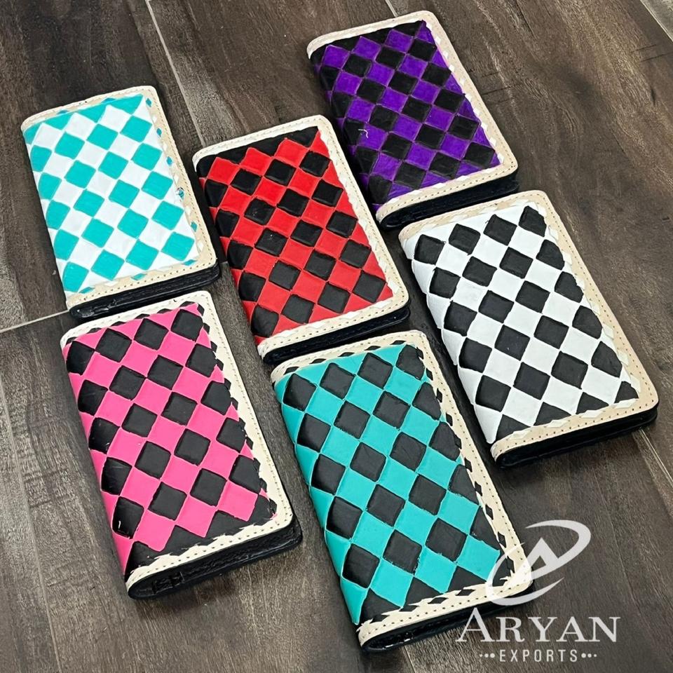 ชื่อสินค้า:กระเป๋าสตางค์หนังแท้ลายตารางแบบพับสองที่ทำด้วยมือ