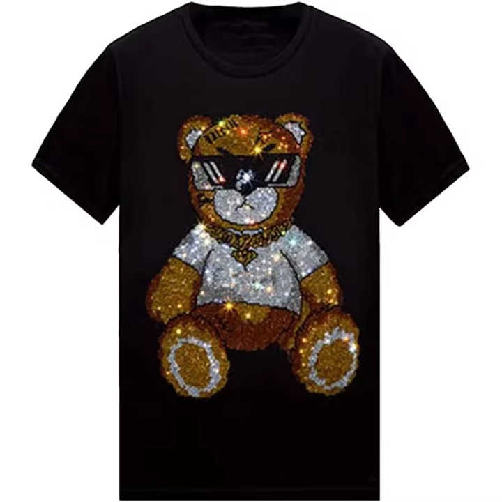เสื้อยืดลายเพชรแบบใหม่ สีดำล้วน เสื้อยืดโลโก้แบรนด์แบบกำหนดเอง เสื้อยืดลายเพชรสำหรับผู้ชาย