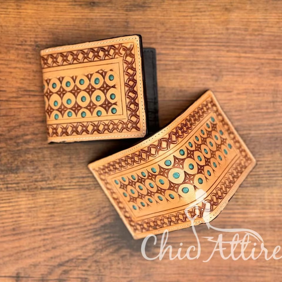 Hand Tooled Leather Men's Short Wallet