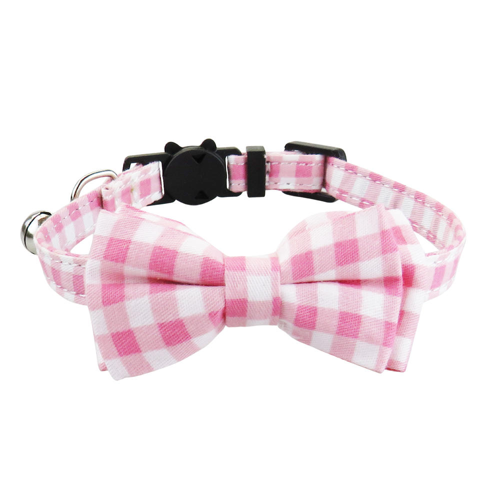 ปลอกคอสัตว์เลี้ยงใหม่ชุดสูทลายสก็อตลายดอกไม้ปลอกคอสุนัขแมวคิตตี้พร้อมโบว์