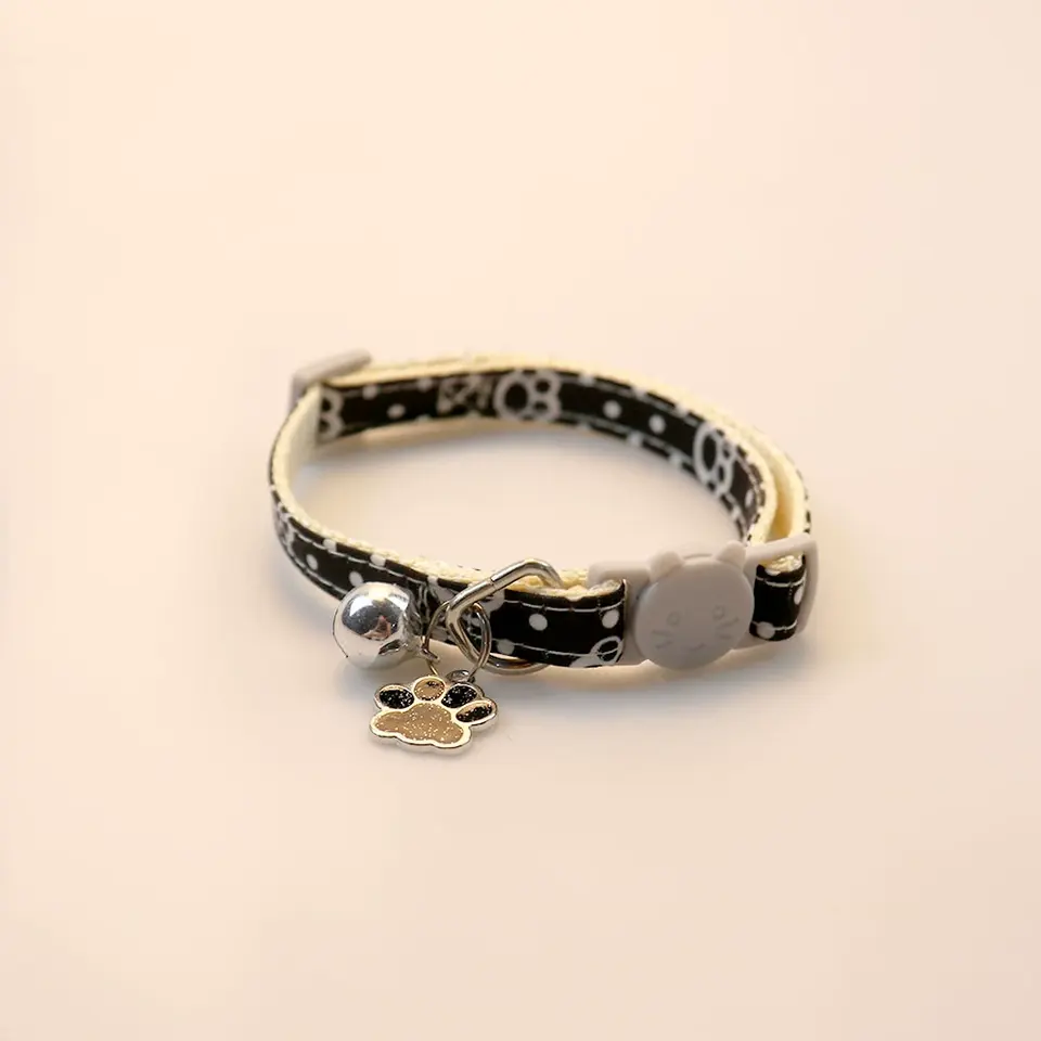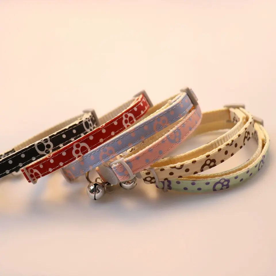 New Pet Collar Paw Print Polka Dot Cat Collar Cute Bell Adjustable Dog Necklace Accessory Wholesale