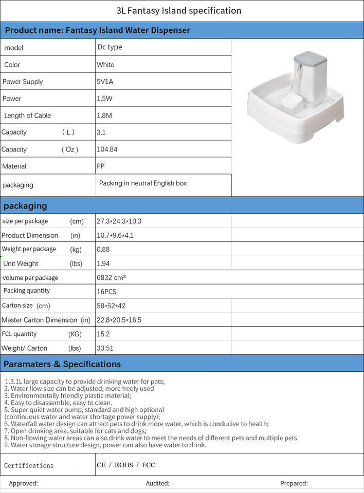 ชื่อผลิตภัณฑ์:น้ำพุสัตว์เลี้ยงอัตโนมัติ