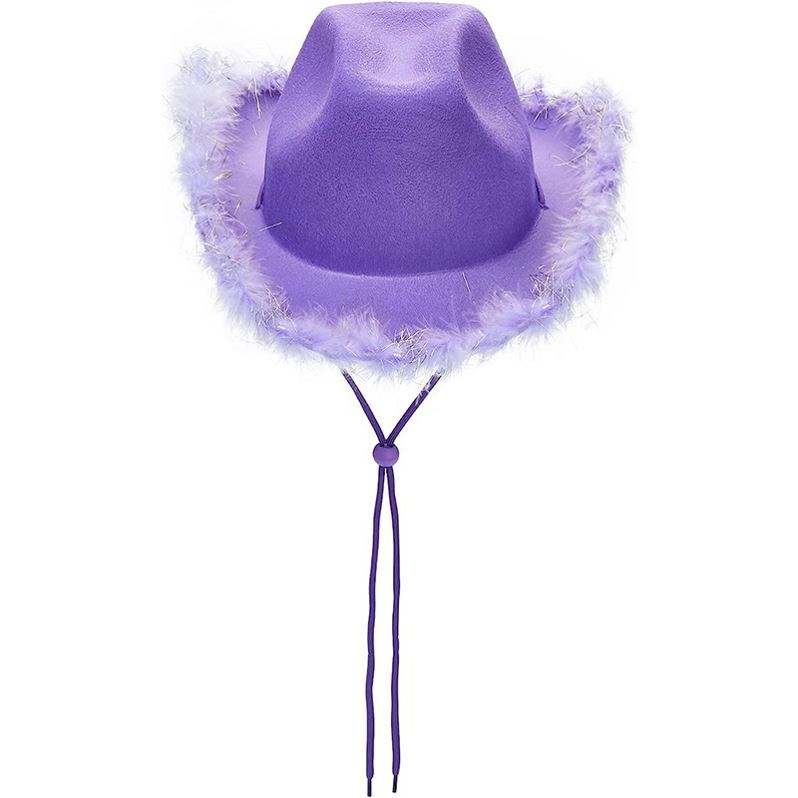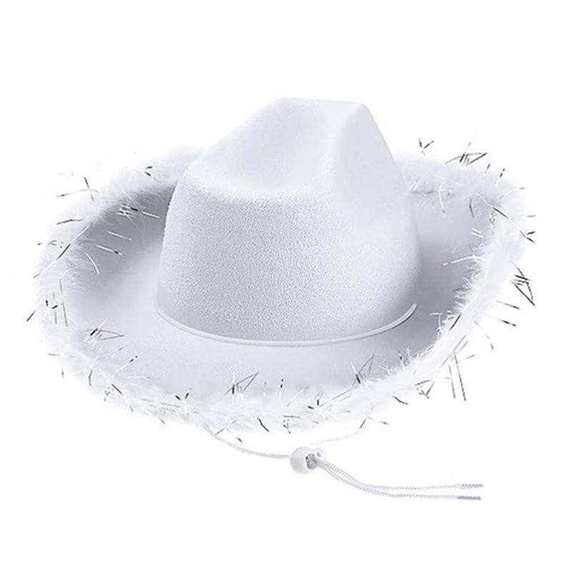 New Pink Western Style Cowgirl Hats for Women Girl Rolled Hat Party Feather Edge Pink Cowboy Hat