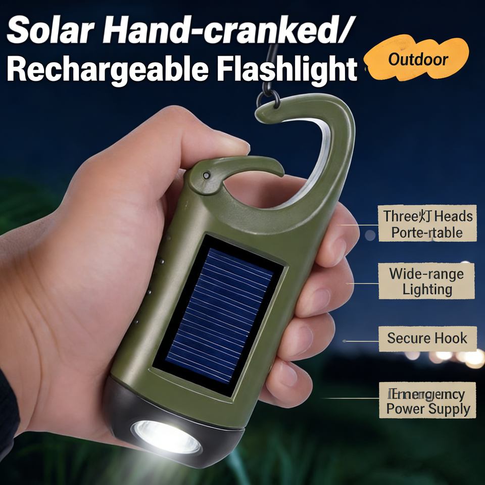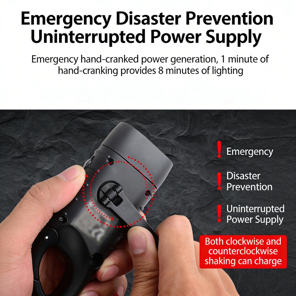 พลังงานแสงอาทิตย์ + ชาร์จไฟผ่าน USB + เครื่องกำเนิดไฟฟ้าด้วยมือหมุน