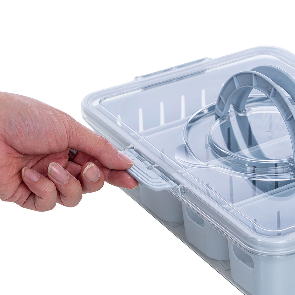 กล่องใส่ขนมพลาสติกแบบพกพา 4 ช่อง ใหม่ กล่องเก็บขนม ถาดแบ่งสำหรับเสิร์ฟ พร้อมฝาและที่จับ