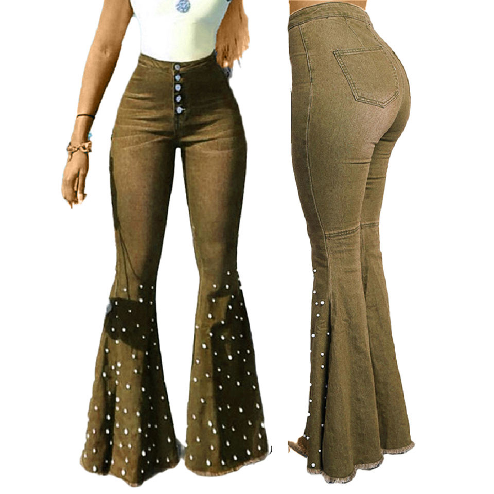 กางเกงยีนส์เอี๊ยมผ้ายีนส์ยืดทรงเข้ารูปประดับลูกปัด สไตล์สตรีทแวร์ คุณภาพสูง ระบายอากาศได้ดี เป็นมิตรต่อสิ่งแวดล้อม สำหรับผู้หญิงไซส์พลัส
