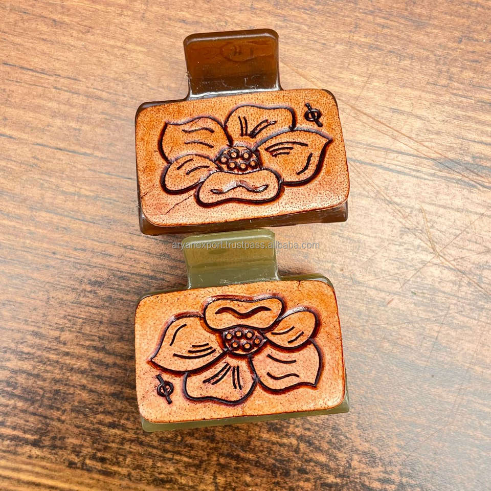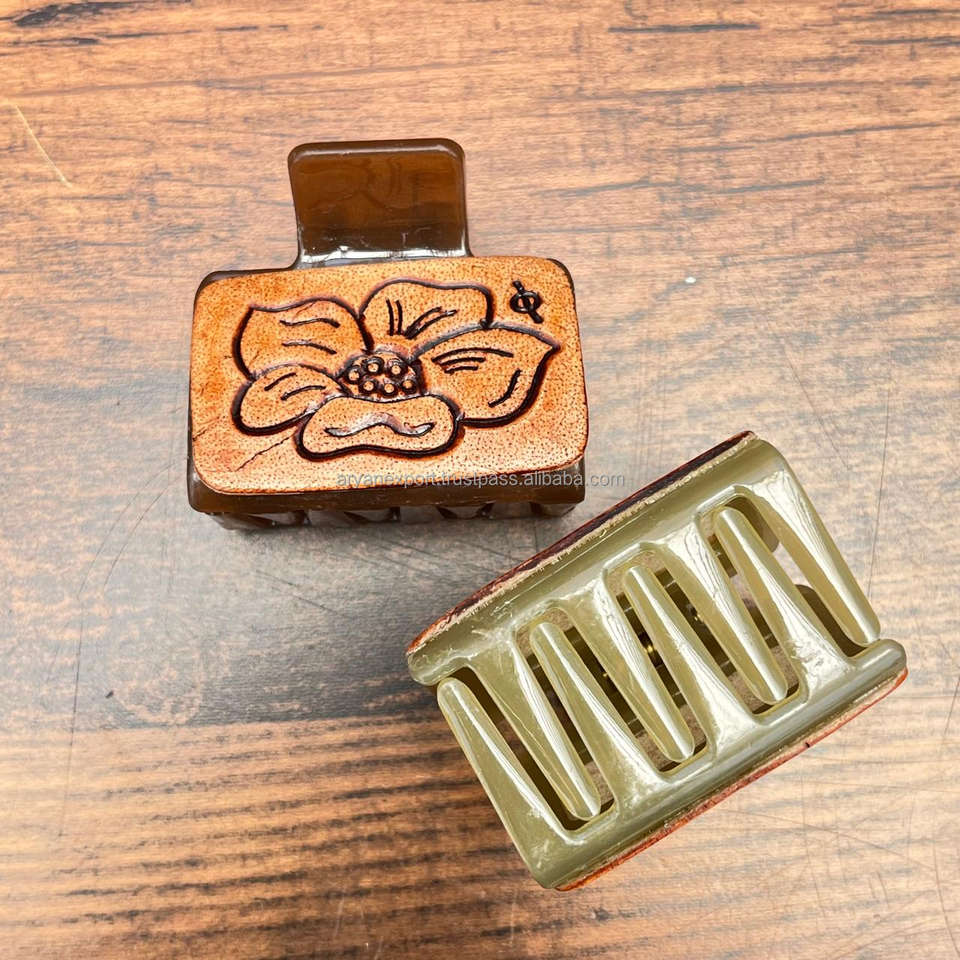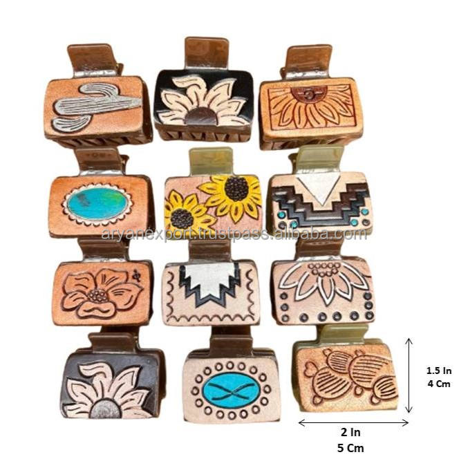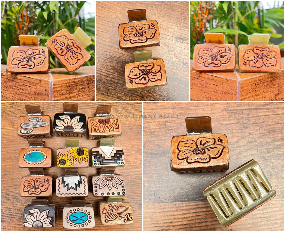 Product name:Tooled Engraved Leather Mini Hair Claw Clips