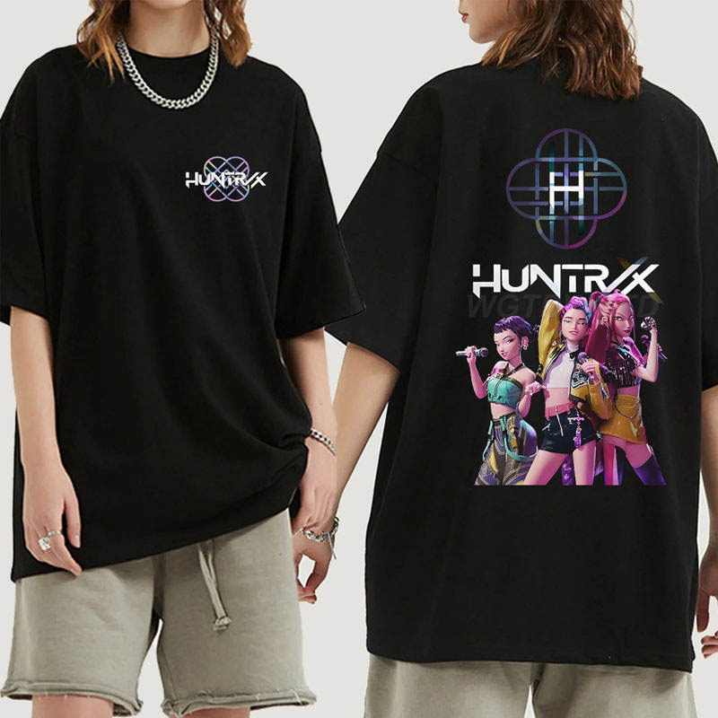 เสื้อยืดคอกลมแขนสั้นพิมพ์ลาย KPop Demon Hunters รุ่นใหม่ยอดนิยม สไตล์ลำลองทรงหลวม