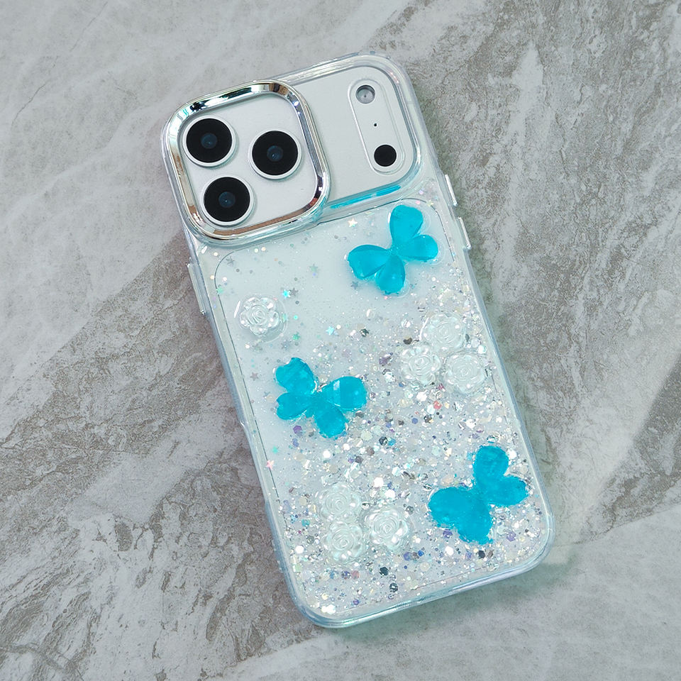 ชื่อ:เคสโทรศัพท์ เลนส์ กล้อง TPU PC ใส ลายดอกไม้ ผีเสื้อ อีพ็อกซี่ กลิตเตอร์